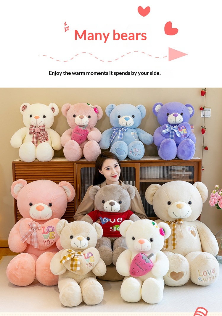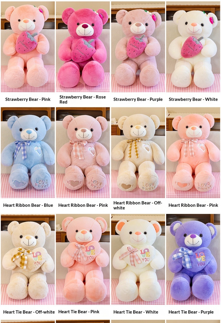 Colors: Sweater Bear White, Sweater Bear Brown, Sweater Bear Gray, Sweater Bear Pink; Strawberry Bear Purple, Strawberry Bear White, Strawberry Bear Pink, Strawberry Bear Rose; Heart-Hugging Bow White, Heart-Hugging Bow Beige, Heart-Hugging Bow Pink, Heart-Hugging Bow Purple; Bunny Bow Beige, Bunny Bow White, Bunny Bow Pink, Bunny Bow Purple